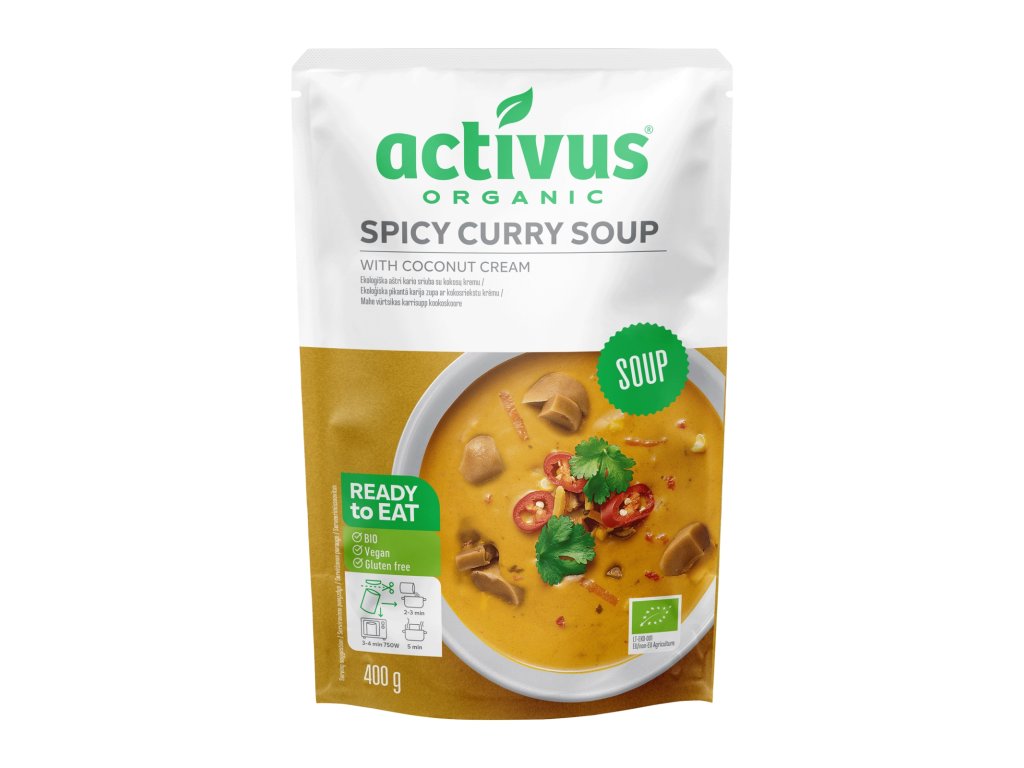 Activus Pikantna zupa curry, 400 g Gotowa wegańska zupa bez konserwantów