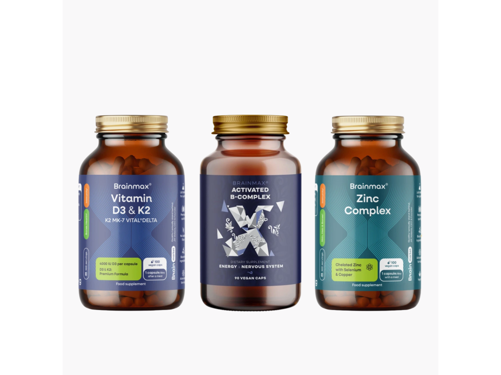 Baza odporności – B-Complex, Cynk, D3 i K2 Zestaw promocyjny suplementów diety