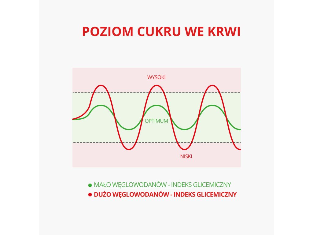 Wysoki poziom cukru we krwi może utrudniać utratę wagi, ponieważ nadmiar insuliny, wytwarzany przez nadmiar cukru w organizmie, sygnalizuje, że organizm ma wystarczająco dużo energii i zaczyna magazynować tłuszcz zamiast go spalać. Ponadto, długotrwały wysoki poziom insuliny może prowadzić do insulinooporności, czyli stanu, w którym komórki są mniej wrażliwe na insulinę. Insulinooporność jest związana z nadwagą lub otyłością i stanowi czynnik ryzyka rozwoju cukrzycy typu 2. Utrzymywanie prawidłowego poziomu cukru we krwi pomaga organizmowi przetwarzać węglowodany i białko na energię, zamiast magazynować je w postaci tłuszczu. Dlatego badania sugerują, że połączenie odpowiedniego spożycia błonnika i białka jest skutecznym sposobem na osiągnięcie stabilnego poziomu cukru we krwi i wspomaganie utraty wagi. 3,4