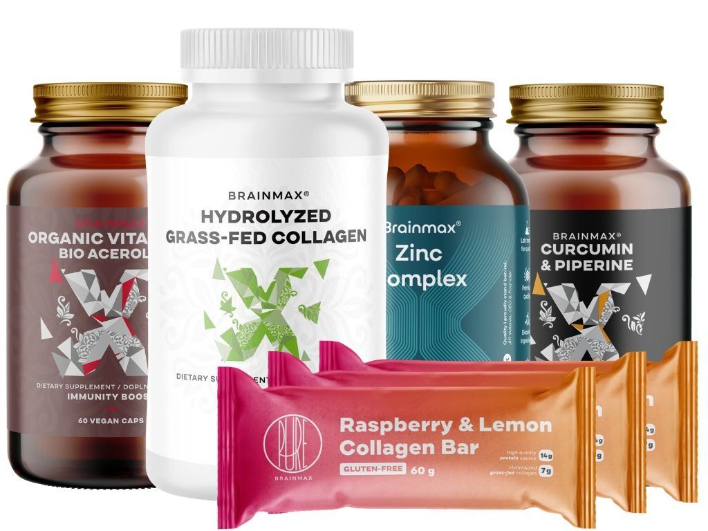 Ponieważ piękno nie jest dziełem przypadku, połączenie składników w tym zestawie zostało przemyślane tak, aby zaspokoić potrzeby organizmu, które są niezbędne do zdrowego wyglądu. Znajdziesz w nim najwyższej jakości kolagen, witaminę C z aceroli, cynk, kurkuminę z piperyną oraz baton kolagenowy. Krótko mówiąc, wszystko, co powinno znaleźć się w podstawowym wyposażeniu.