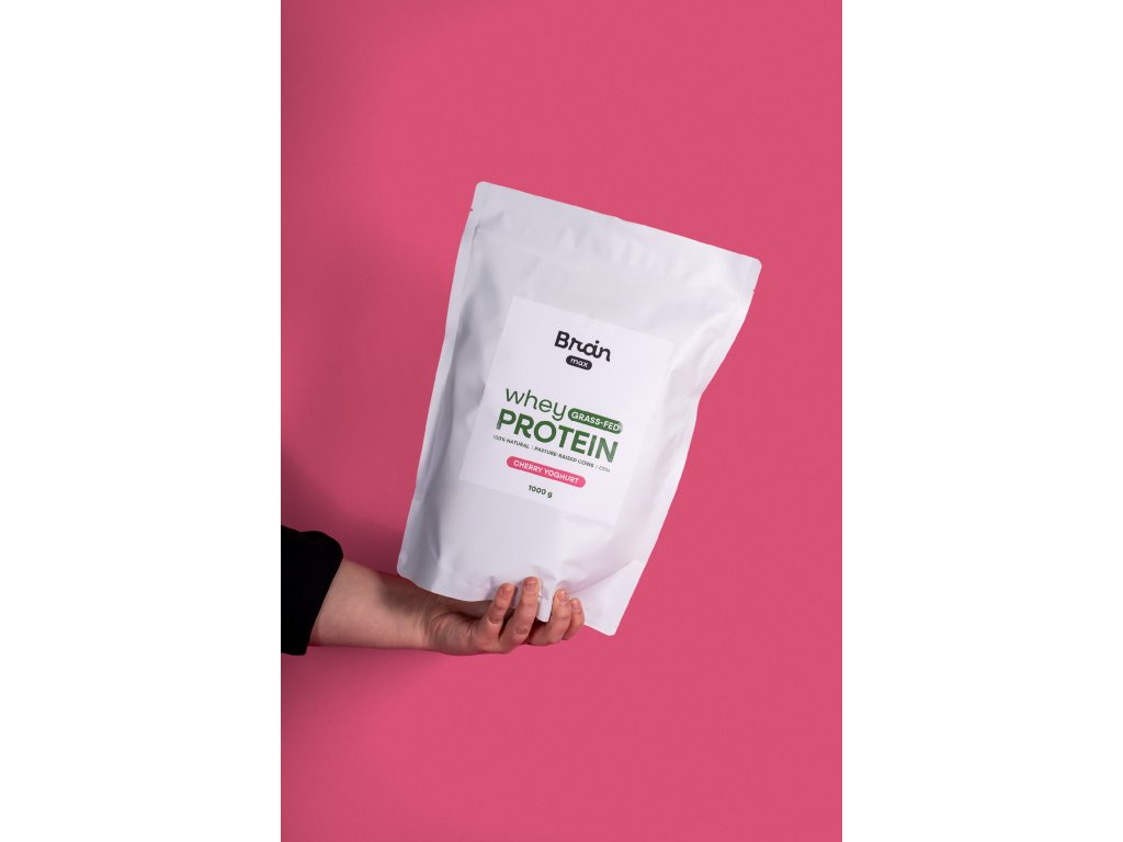BrainMax Grass-fed Whey Protein, Cherry Yogurt, 1000 g Czyste, niedenaturowane z mleka krów z wolnego wybiegu, karmionych trawą. Mikrofiltracja na zimno. 28 porcji.