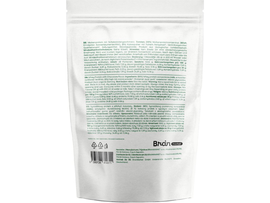 BrainMax Grass-fed Whey Protein, Czekolada, 1000 g Czyste, niedenaturowane z mleka krów z wolnego wybiegu, grass-fed. Mikrofiltracja na zimno. 28 porcji.