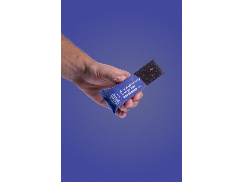 Każdy kęs tego batonika jest pełen naturalnych cukrów owocowych, które szybko pomogą Ci wrócić do formy. Z prawdziwymi superfoods! Jagody acai i borówki to znane „małe bomby energetyczne”, które zawierają wiele korzystnych dla organizmu substancji, takich jak antocyjany i polifenole. 100% BIO jakość, bez rafinowanego cukru, oleju palmowego i sztucznych dodatków. Składniki, które przeczytasz bez słownika – tylko daktyle, migdały, liofilizowane jagody, acai i kokos.