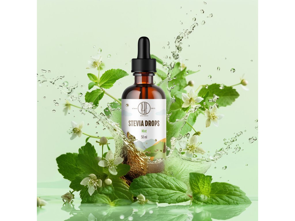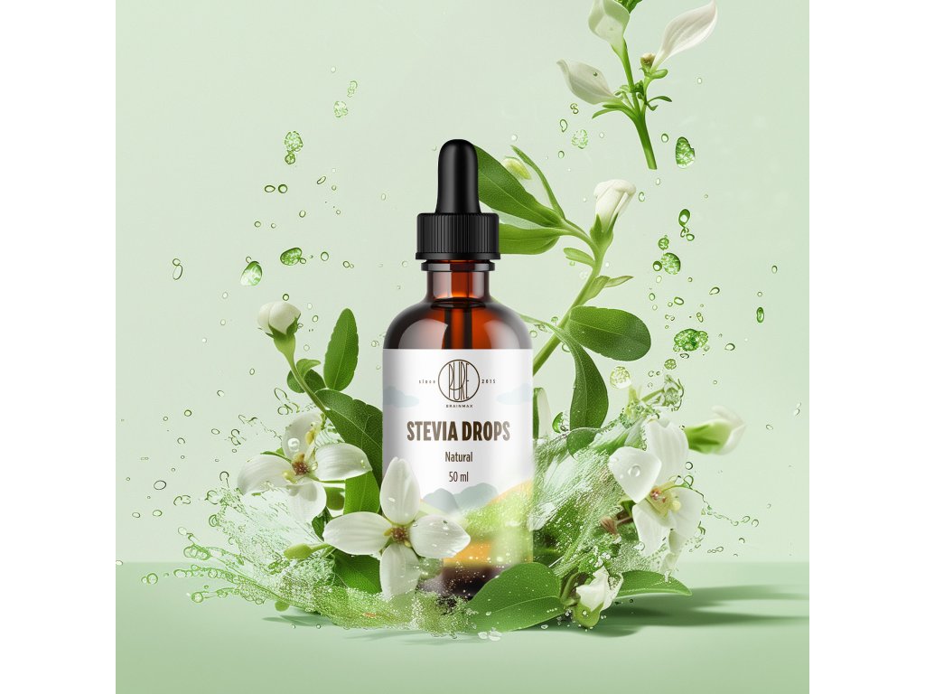 BrainMax Pure Stevia drops, stewia w kroplach, różne rodzaje, 50 ml Płynny słodzik o zerowym indeksie glikemicznym, bez kalorii, substytut cukru
