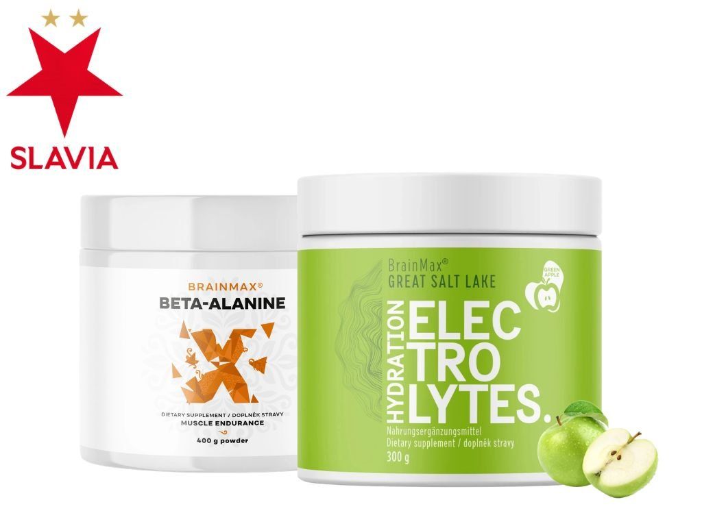 Slavia Praga jest przyzwyczajona do wymagającego kalendarza – i ten pakiet został stworzony właśnie pod ten rytm. Beta-alanina w czystej postaci , bez zbędnych dodatków, oraz elektrolity jabłkowe z minerałami prosto z Wielkiego Jeziora Słonego – tauryną, sodem, magnezem, wapniem i aktywną witaminą B6. Dwa produkty, jeden cel: uzupełnienie potrzeb organizmu. Zawodnicy Slavii Praga doskonale o tym wiedzą.