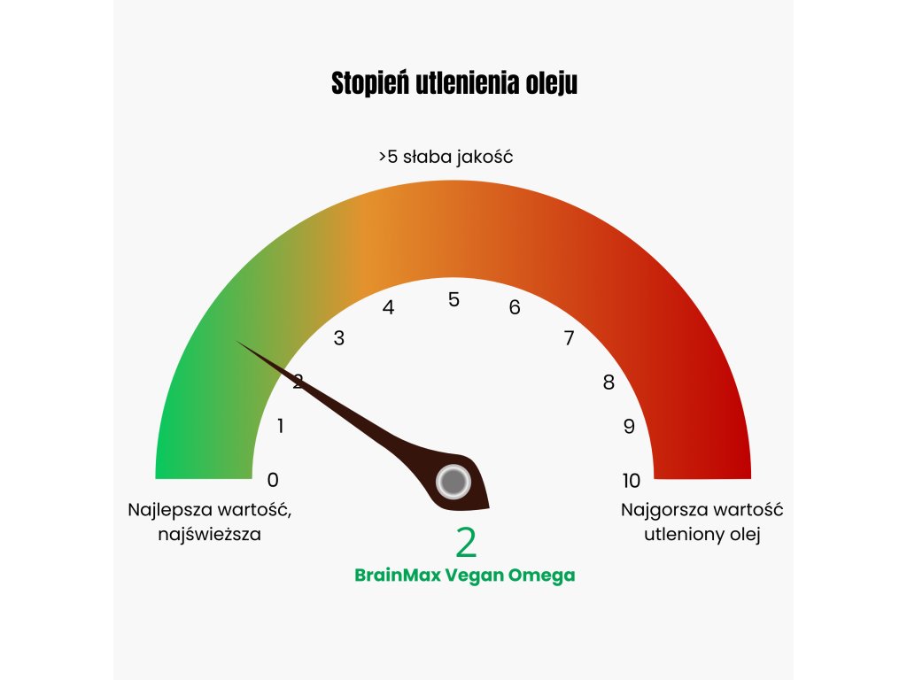 Z naszym produktem nie musisz się martwić o żadne z tych niedogodności, ponieważ zabezpieczyliśmy świeży olej z alg przed utlenianiem polifenolami z ekologicznej oliwy z oliwek z Andaluzji. Dzięki temu nasz olej osiąga bardzo niską liczbę nadtlenkową – maks. 2,0 – co oznacza, że jest minimalnie utleniany.