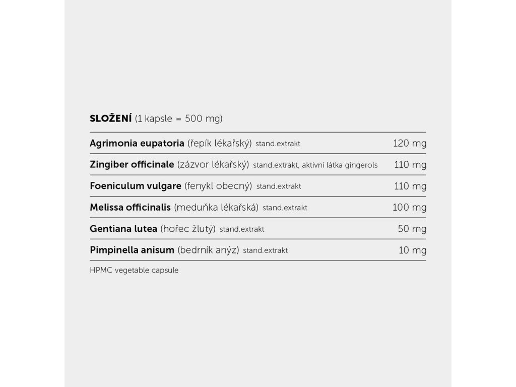 Rzepik pospolity (Agrimonia eupatoria) , Zingiber officinale (Zingiber officinale) , Foeniculum vulgare (Foeniculum vulgare) , Melissa officinalis (Melissa officinalis) , Gentiana lutea (G anientiana lutepineaella) sum) ,