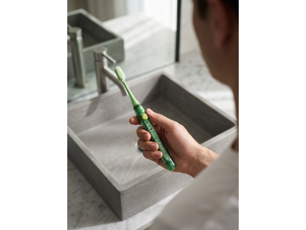 Elektryczna szczoteczka do zębów w nowoczesnym zielonym designie zapewnia skuteczne i delikatne czyszczenie każdego dnia, gdziekolwiek jesteś. Oferuje 3 tryby czyszczenia, delikatne włosie przyjazne dla dziąseł oraz cichą, ale wydajną pracę. Nie brakuje 2-minutowego timera ani powiadomienia o zmianie strefy dla dokładnego czyszczenia. Dzięki wodoodporności IPX7, etui podróżnemu, ładowaniu USB i długiej żywotności jest idealnym towarzyszem w domu i w podróży.