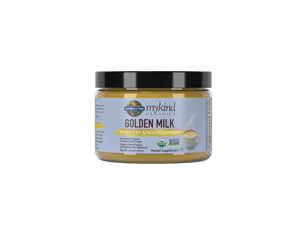 Golden Milk to pyszna mieszanka oparta na tradycyjnych recepturach ajurwedyjskich, najwyższej jakości organicznej. Zawarte w niej kurkuma i imbir są fermentowane dla łatwiejszej strawności. Kurkuma (kłącze) wspomaga prawidłowe funkcjonowanie układu sercowo-naczyniowego i działa jako przeciwutleniacz. Kompozycja wzbogacona jest organicznym czarnym pieprzem, który wspomaga prawidłowe trawienie, oraz probiotykami. Certyfikaty USDA Organic i Non-GMO gwarantują, że zioła były uprawiane bez użycia pestycydów i ekstrahowane delikatnymi metodami, bez użycia chemikaliów. Mieszanka jest w jakości RAW, co gwarantuje zachowanie wszystkich aktywnych enzymów i minerałów dla maksymalnej przyswajalności.