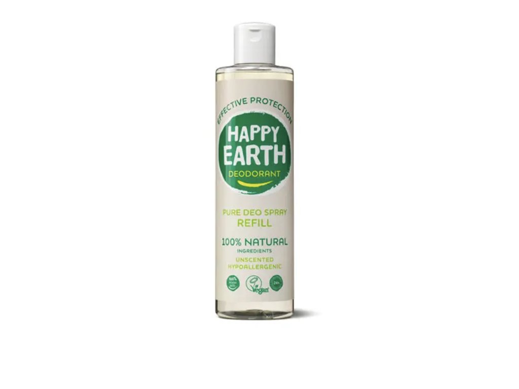 Wkład dezodorantu Happy Earth to opakowanie zastępcze dla naszego dezodorantu w sprayu. Dzięki temu możesz napełnić butelkę ze sprayem nawet trzykrotnie i zużyć o 66% mniej plastiku!