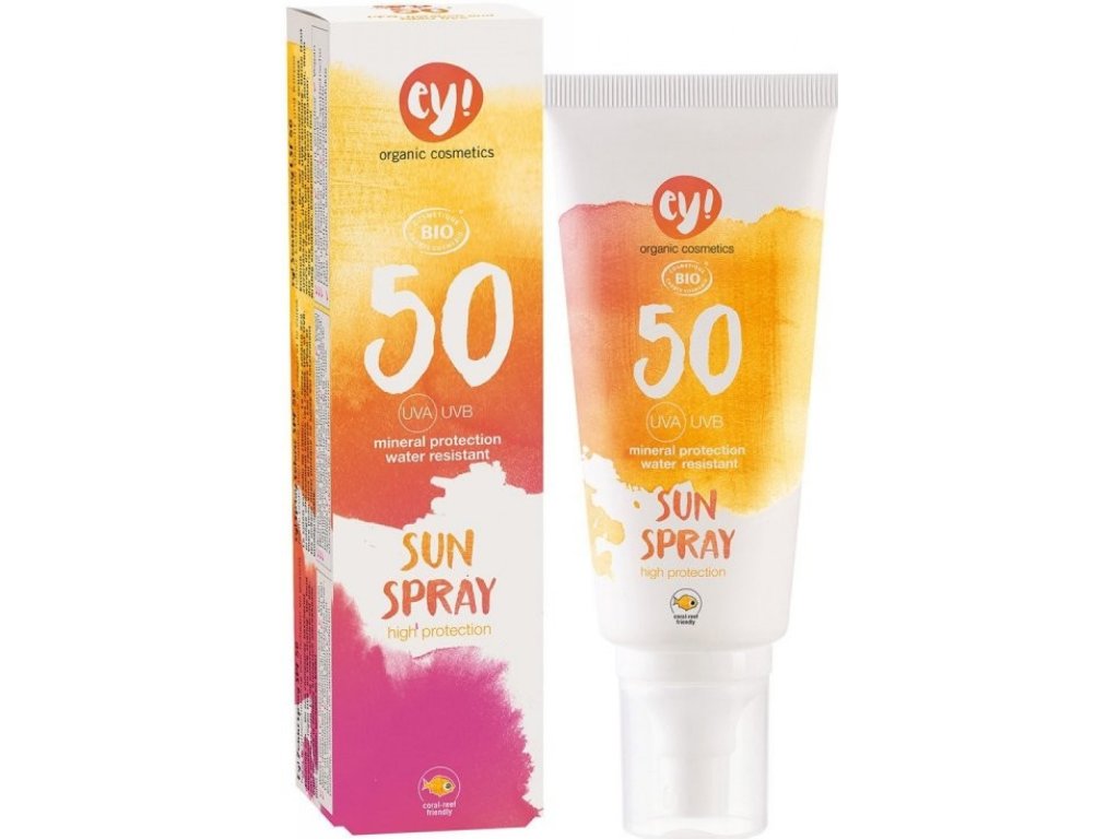 W 100% naturalny spray do opalania z bardzo wysoką ochroną Faktor SPF 50 z nowej serii Ey! niemieckiego producenta Eco Cosmetics zapewnią Twojej skórze tak potrzebną ochronę przed promieniami słonecznymi. Jest w tym wyjątkowy nie zawiera wody , ale wysokiej jakości oleje roślinne (oliwka, jojoba, rzepak). Tak dobrana kombinacja pielęgnuje Twoją skórę i zapobiega jej wysuszeniu. Łatwy w aplikacji i rozprowadzaniu. Nadaje się również do stosowania na twarz i jest wodoodporny .