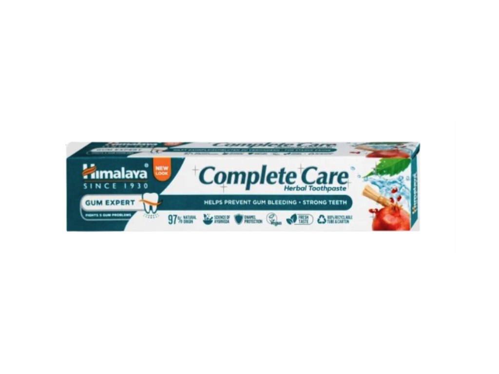 Pasta do zębów Himalaya Complete Care to zaawansowana formuła ziołowa, która zapewnia do 12 godzin ochrony przed szkodliwymi bakteriami, pomaga zapobiegać krwawieniu dziąseł i tworzeniu się płytki nazębnej.