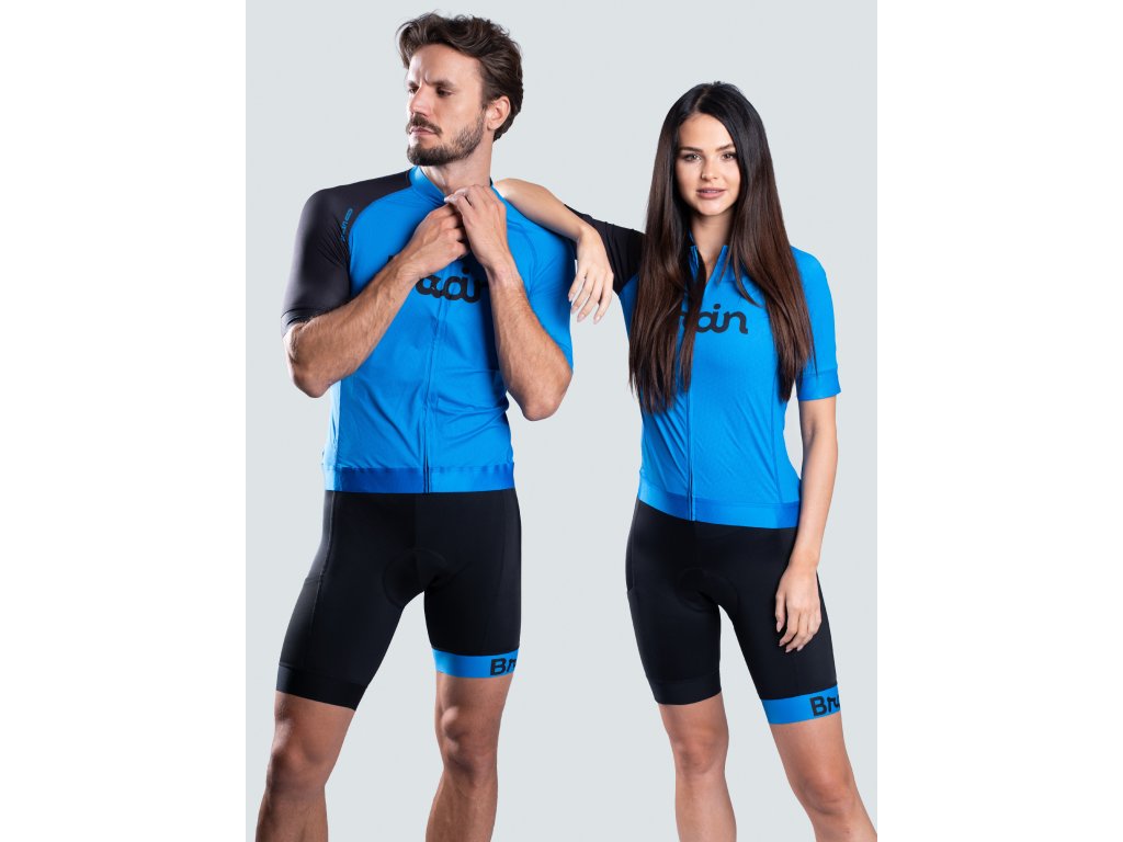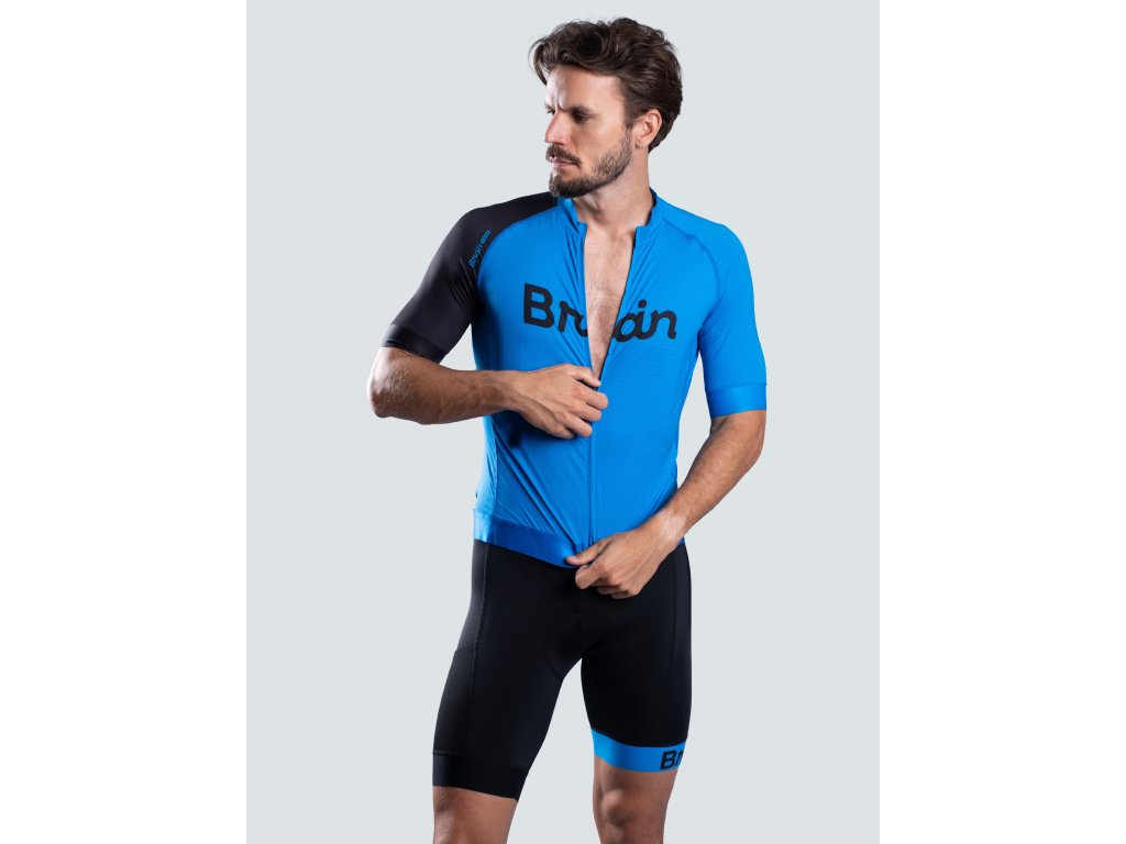 BRAIN zestaw kolarski – koszulka i spodenki, niebieski Niebieska koszulka kolarska z krótkimi spodenkami