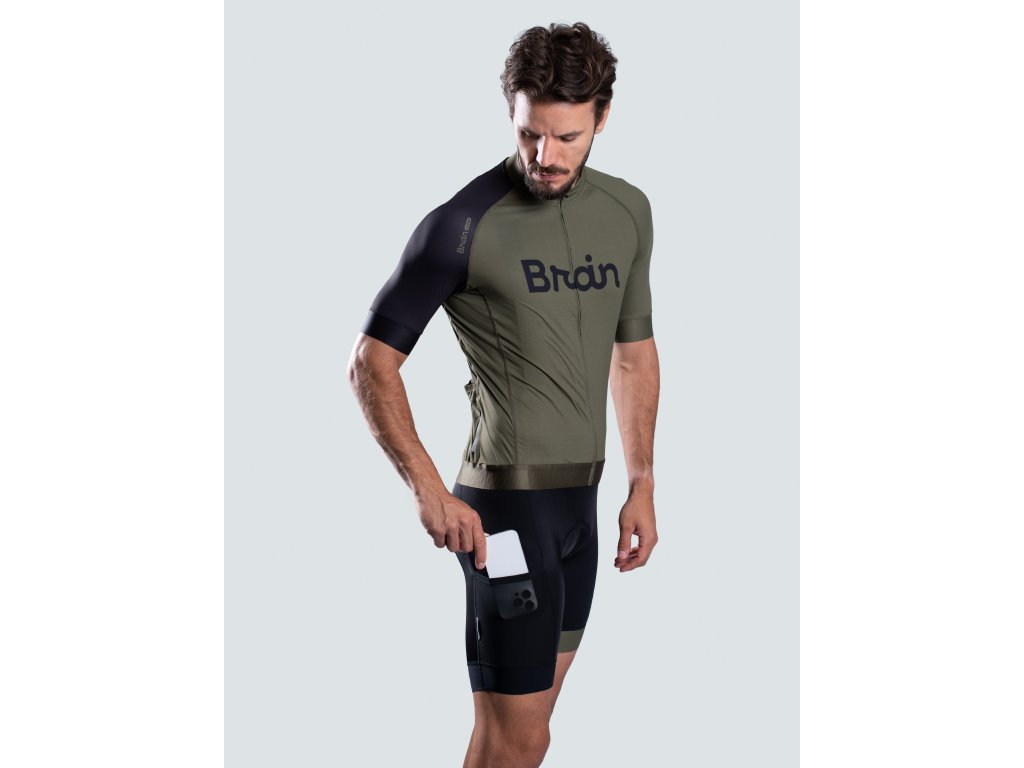 BRAIN zestaw kolarski – koszulka i spodenki, zielony Zielona koszulka kolarska z spodenkami