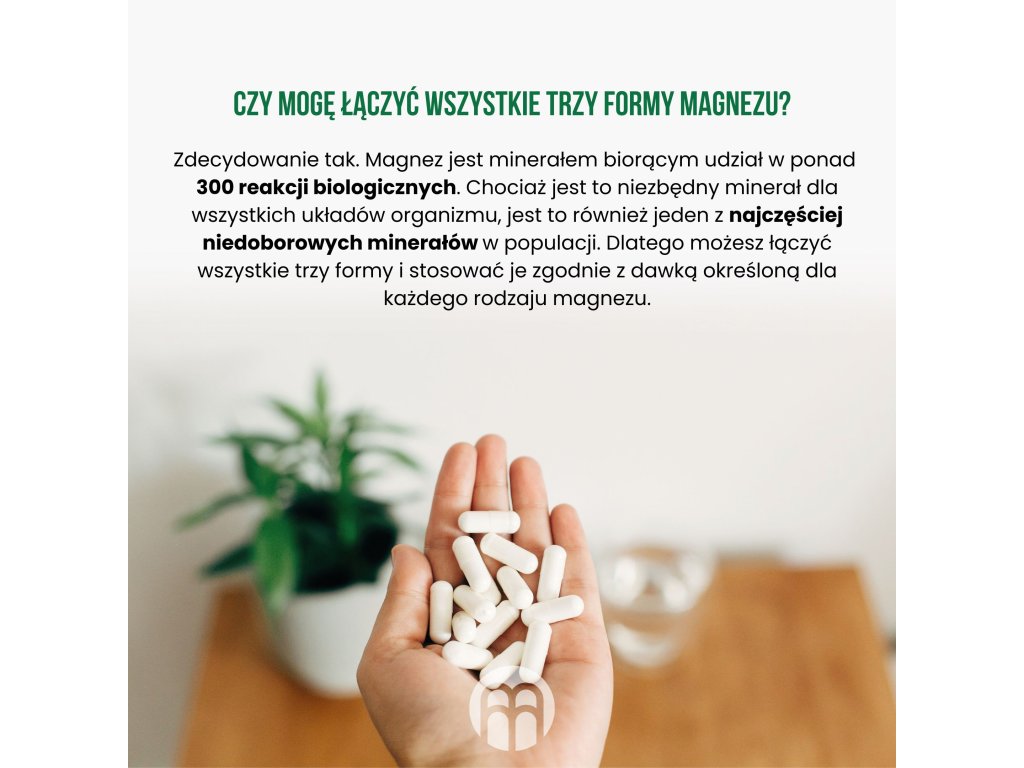 Aby odpowiednio uzupełniać magnez w ciągu dnia, idealnie jest zacząć rano z Energy Magnesium®, które zawiera malan magnezu przyczyniający się do normalnego metabolizmu energetycznego. Performance Magnesium®, które łączy magnez bisglicynian i witaminę B6, uzupełniaj po aktywności fizycznej lub po południu, aby przyczyniło się do normalnej funkcji układu nerwowego i mięśniowego oraz zmniejszenia zmęczenia i wyczerpania. Sleep Magnesium® stosuj około 30 minut przed snem. Ten suplement zawiera magnez bisglicynian i inne substancje, które wpływają na jakość snu.
