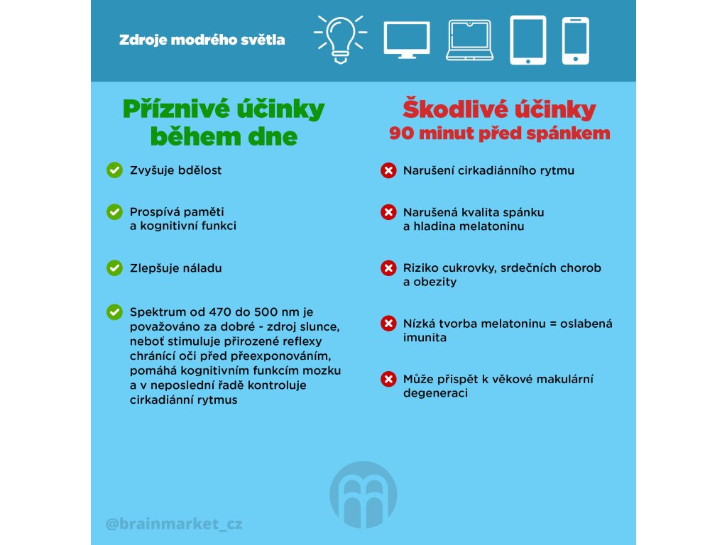 Niebieskie światło między 380 a 470 nm jest uważane za szkodliwe, ponieważ może powodować uszkodzenie siatkówki, zaćmę i jest związane z zaburzeniami snu. Jednak nie wszystkie widma światła niebieskiego są złe, na przykład widmo od 470 do 500 nm, zwane również światłem turkusowoniebieskim, jest ogólnie uważane za dobre. Ten zakres widzialnego niebieskiego światła jest korzystny, ponieważ stymuluje naturalne odruchy, aby chronić oczy przed nadmierną ekspozycją, a także wspomaga funkcje poznawcze i pamięciowe mózgu. Jednocześnie stymuluje światłoczułe komórki zwojowe siatkówki, a także odruch źreniczny i kontroluje cykl dobowy.