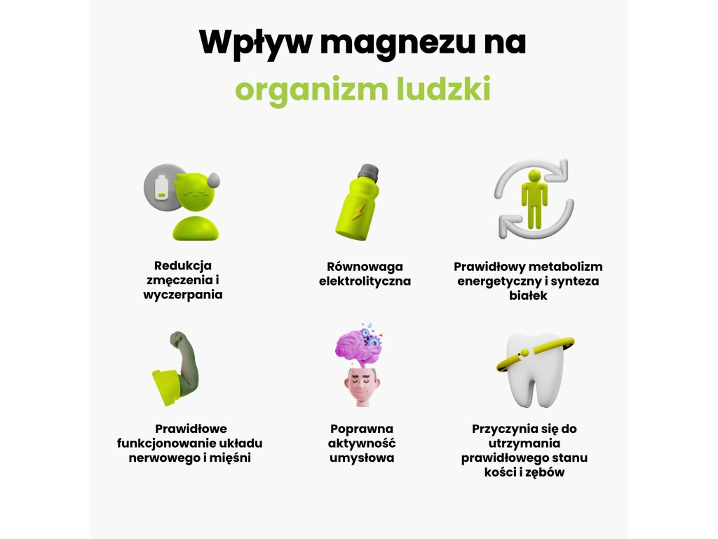 - Magnez przyczynia się do prawidłowego metabolizmu energetycznego.