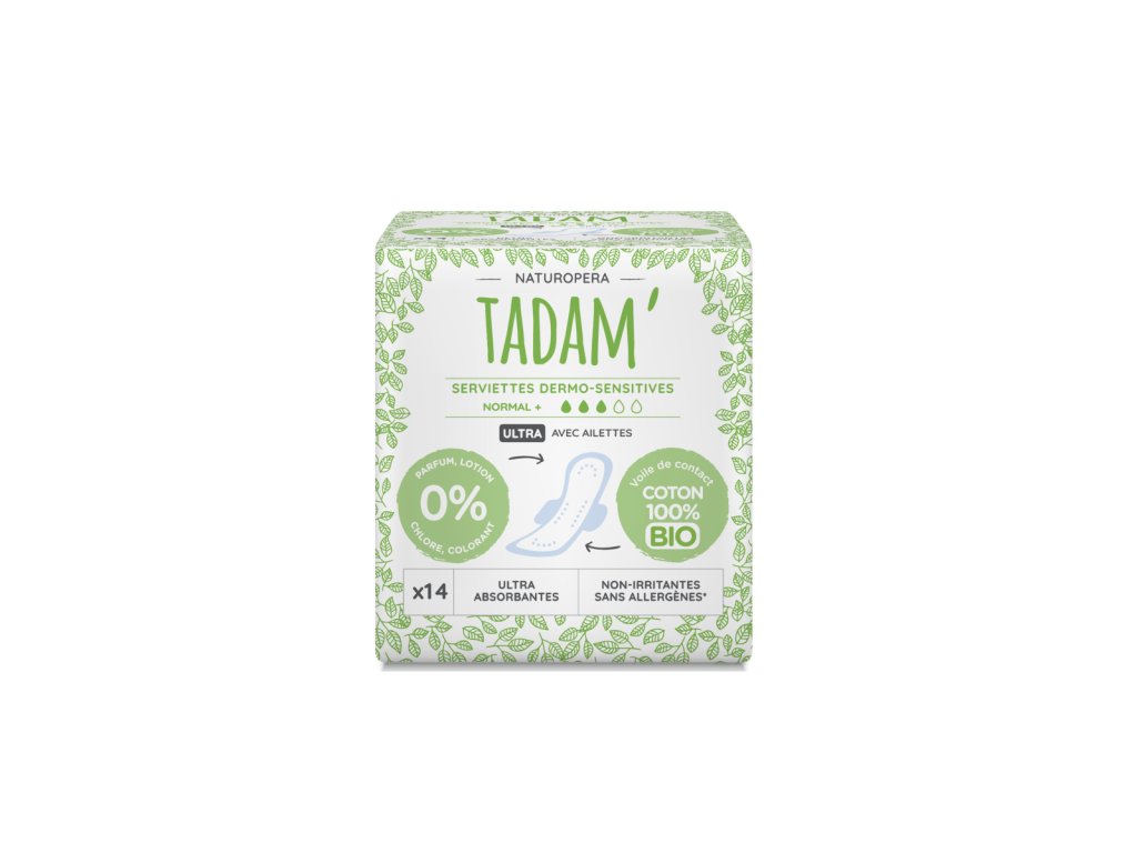 Podpaski TADAM Dermo sensitive z bawełny organicznej, normal+, 14 szt. Delikatna i wygodna ochrona