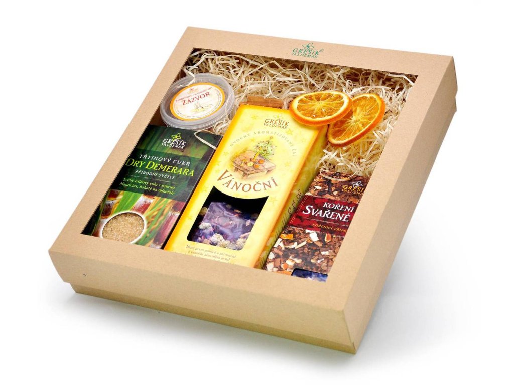 Kaseta zawiera: Imbir kandyzowany 50 g, Przyprawy do grzańca 50 g, Cukier trzcinowy Dry Demerara